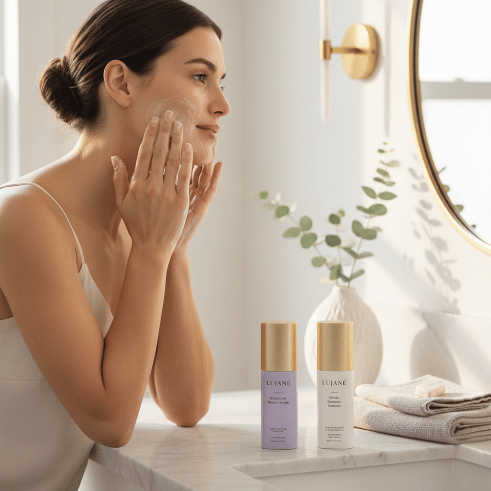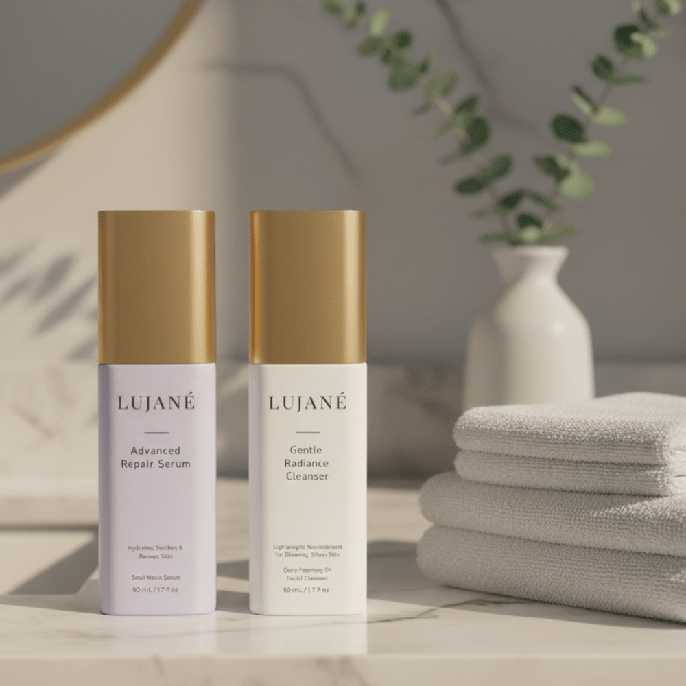 Transform your routine with two products that work in perfect harmony. The Lujané Glow Duo delivers calm, radiant skin without the complexity—just pure, effective care that respects your skin's natural balance. Start with a cleanser that purifies without stripping. Follow with a serum that floods your skin with restorative hydration. Together, they create the foundation for your healthiest, most luminous complexion.