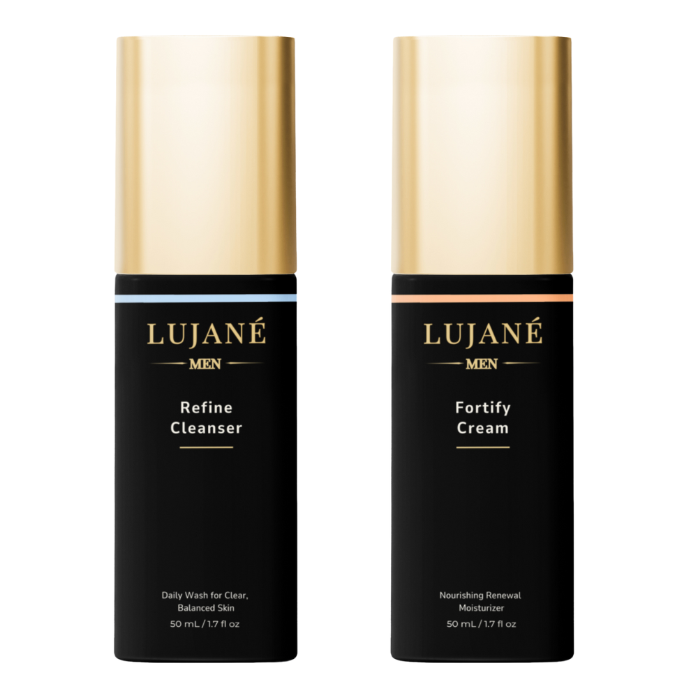 Strong Skin, Simple Routine. The Lujané Men's Essential Kit is your no-nonsense, two-step routine for clean, comfortable, resilient skin. Refine Cleanser removes sweat, oil, and buildup without stripping, while Fortify Cream locks in long-lasting hydration and barrier support. Simple, smart, and built for everyday life.
